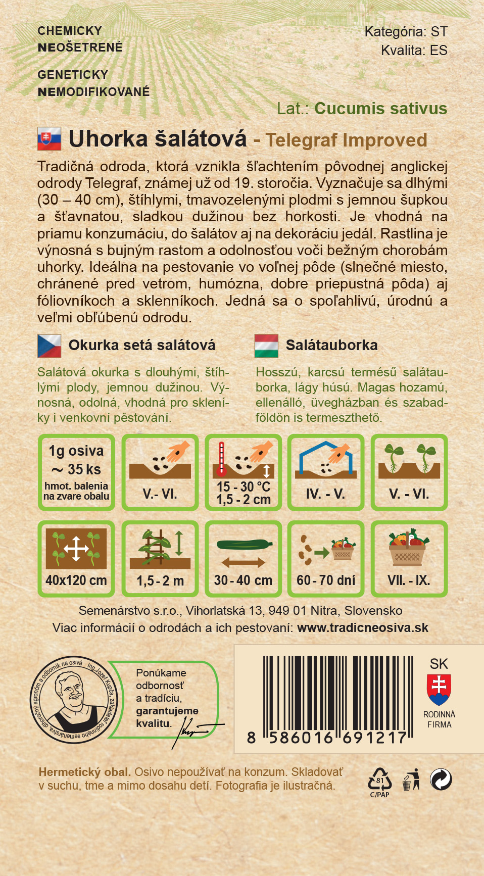 Tradičná odroda, ktorá vznikla šľachtením pôvodnej anglickej odrody Telegraf, známej už od 19. storočia. Vyznačuje sa dlhými (30 – 40 cm), štíhlymi, tmavozelenými plodmi s jemnou šupkou a šťavnatou, sladkou dužinou bez horkosti. Je vhodná na priamu konzumáciu, do šalátov aj na dekoráciu jedál. Rastlina je výnosná s bujným rastom a odolnosťou voči bežným chorobám uhorky. Ideálna na pestovanie vo voľnej pôde (slnečné miesto, chránené pred vetrom, humózna, dobre priepustná pôda) aj fóliovníkoch a sklenníkoch. Jedná sa o spoľahlivú, úrodnú a veľmi obľúbenú odrodu.